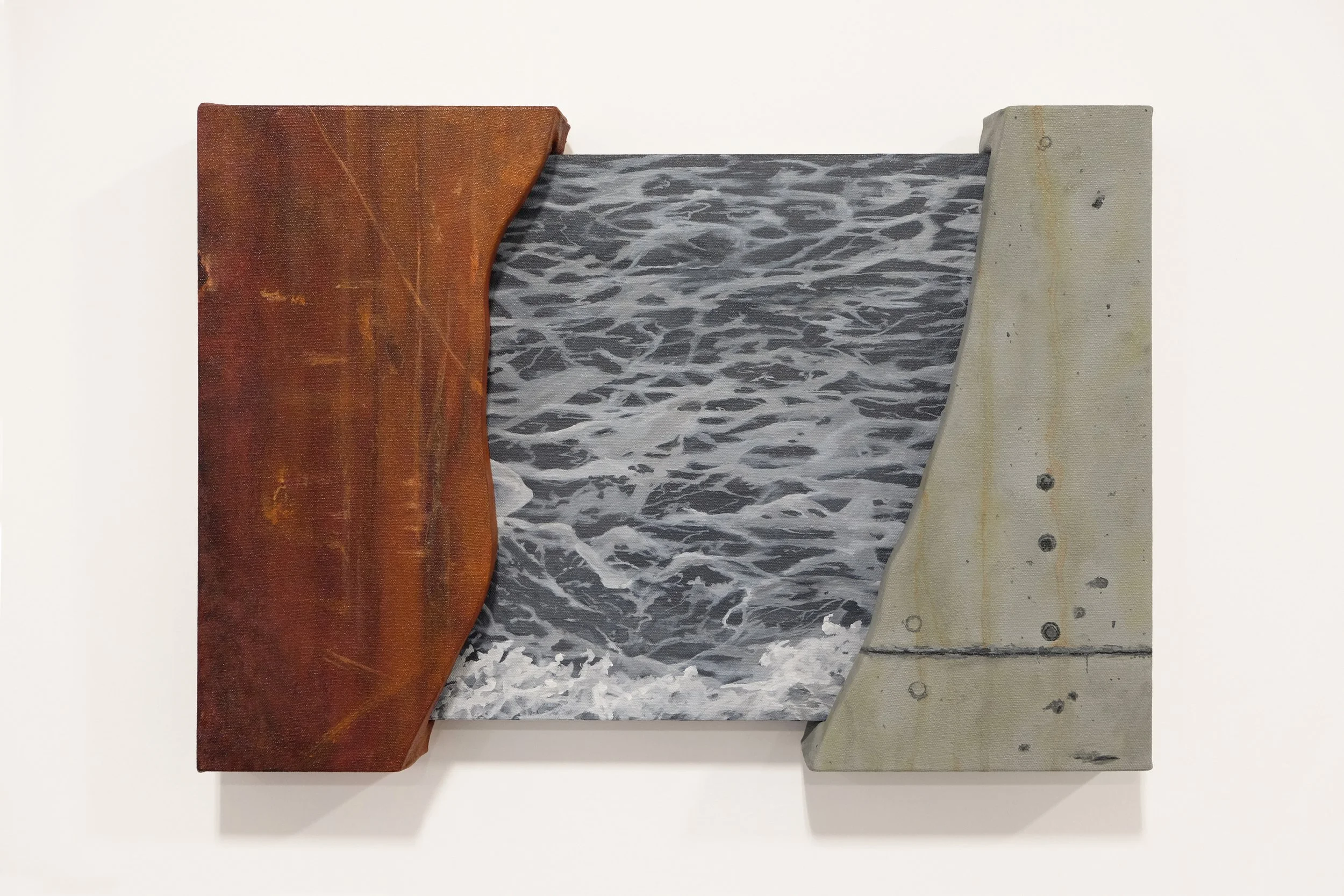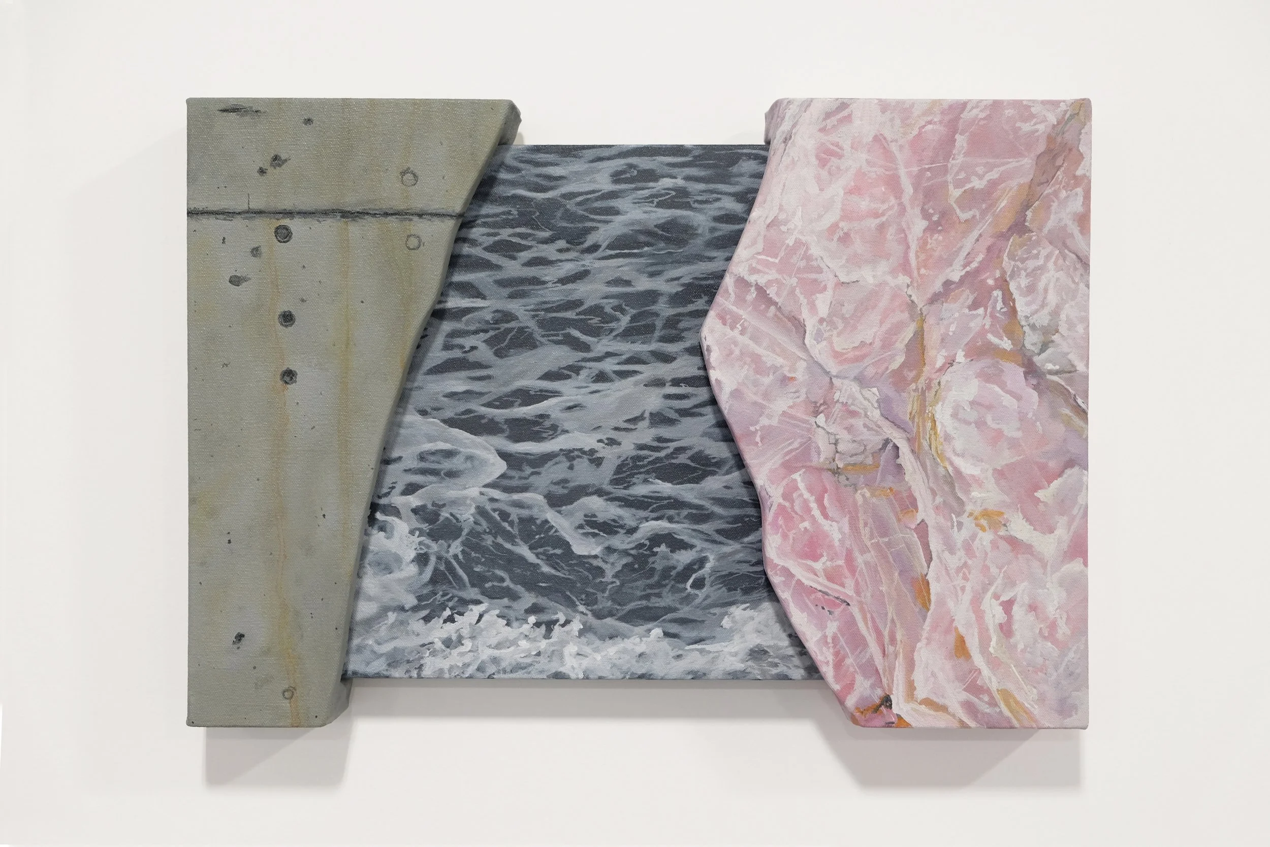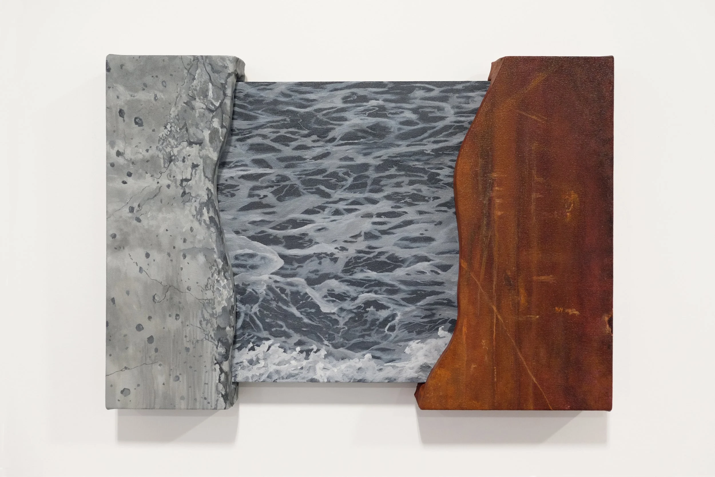 “Extruded Marble / The Bay”: 17in x 12in x 2.5in, acrylic on canvas, 2023