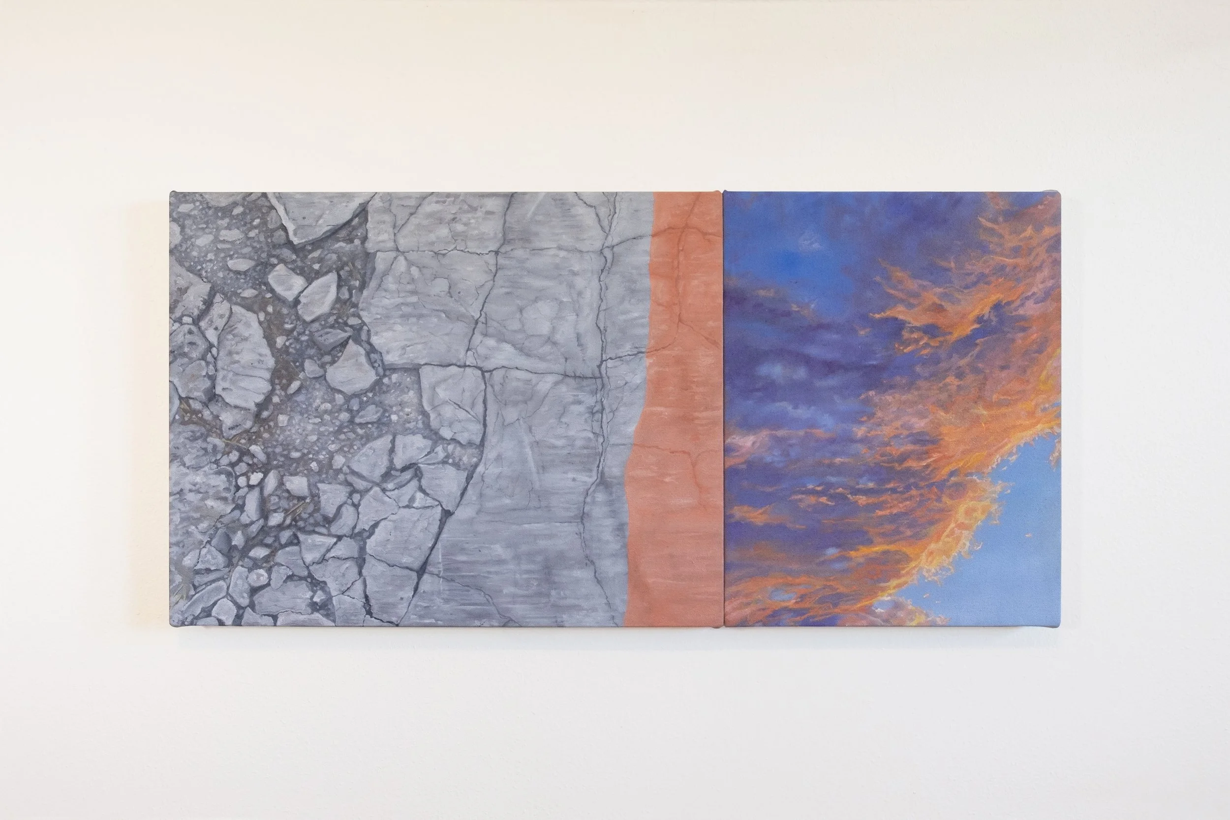 “Crushed Concrete / Shared Sky”: 14in x 29in, oil on canvas (two canvases joined), 2025