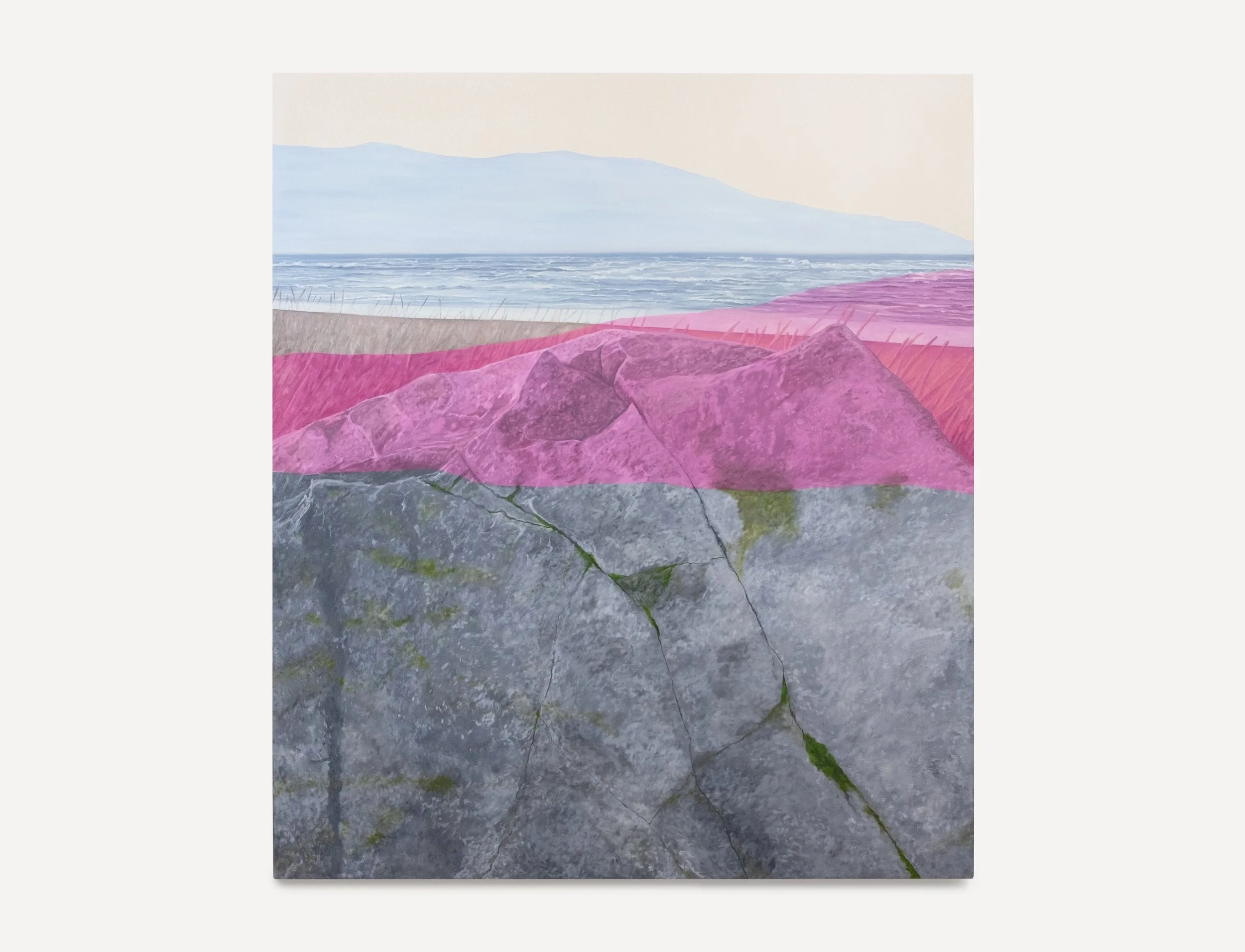 “Roses / Concrete / Layered Rock”: 48in x 56in, acrylic on canvas, 2024
